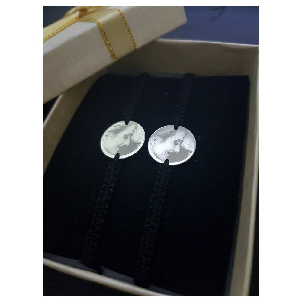 Setul contine 2 bratari cu banuti de argint de 16 mm, va rugam sa alegeti fotografii cat mai clare pentru o gravaura cat mai precisa.