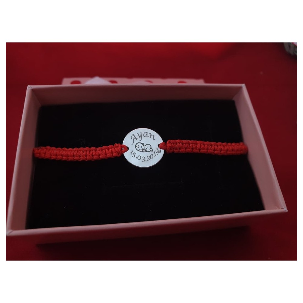 Bratara este conceputa special pentru copilasi, este cu banut de argint de 14 mm si snur impletit, din matase sintetita premium.